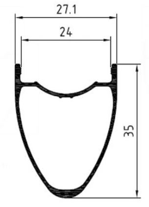 The new Universe 2435 is the larger sibling of the Universe 2428, featuring a 7mm deeper rim profile for enhanced aerodynamics. Its 24mm internal width accommodates high-volume tires, while its high stiffness and aerodynamic efficiency ensure superior comfort, off-road capability, and exceptional durability. The hookless rim flanges provide increased impact resistance thanks to their thicker sidewalls. Additionally, the inside of the rim flanges is equipped with the THG (Tire Hold Grooves) system, guaranteeing optimal tire seating and retention. Constructed from high-strength New Era Alloy, the rim remains exceptionally stiff despite its remarkably light weight. Its tubeless-ready design allows for easy tubeless setup. This rim is exclusively for tubeless-ready tires and can accommodate tire widths from 30mm to 65mm, with a maximum air pressure of 5 bar. Details: